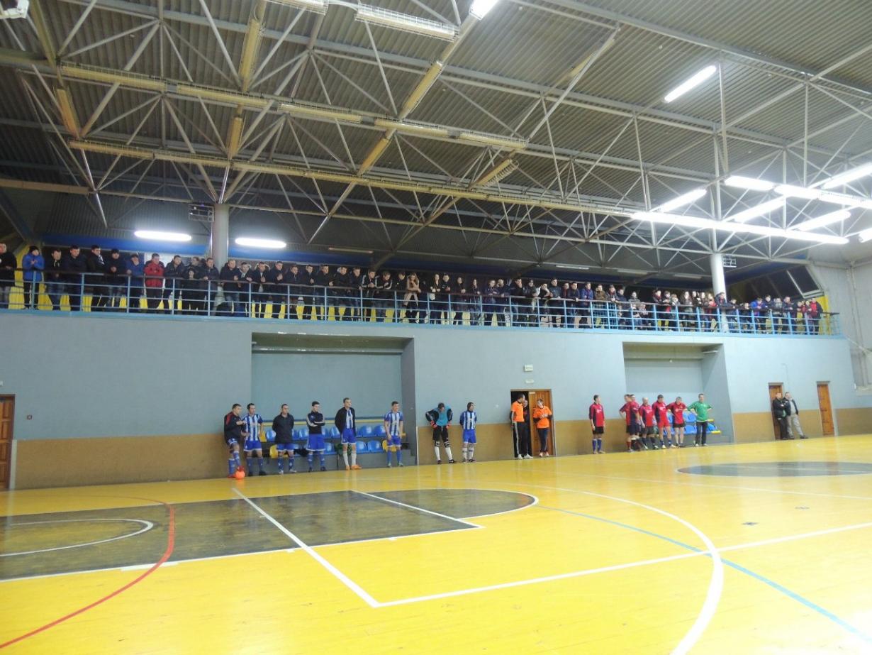 У Коростені майданчик в межах футзальних правил, але не відповідає міжнародним вимогам – він, якщо я не помиляюсь, десь 37 на 18. Там грають, але це не шкільний зал. Табло є, інша справа – питання інформативності та його розміру.